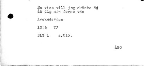 //// { En visa vill jag skänka //// åt dig min forne vän //// ^^ Avskedsvisa //// 10:4 TJ //// ! SLS 1 s.215* //// ÅBO ////