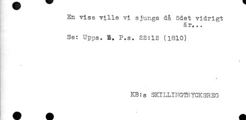 //// En visa ville vi sjunga då Sdet vidrigt //// 8. 3?+ * * //// t //// - //// Se: Upps. 3. P.s. 23:12 (1810) //// t * //// * //// * //// KB:s SKILLINGTRYCKSREG ////