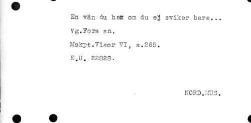 //// En vän du han om du eg. sviker bara... //// Vg.Fors sn, //// Mskpt.Visor VI, s.265. //// E.U. 22828. //// NORD.MUS. ////