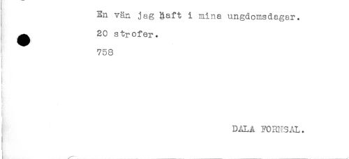 //// En vän jag Raft i mina ungdomsdagar. //// ^ 20 strofer. //// I 758 //// '' //// *!- //// DALA FORMS/JL. ////