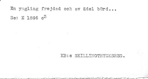 //// En yngling frejdad och av ädel börd... //// Se: E 1896 c^ //// * //// * //// KB:s SKILLINGTRYCKSREG. ////