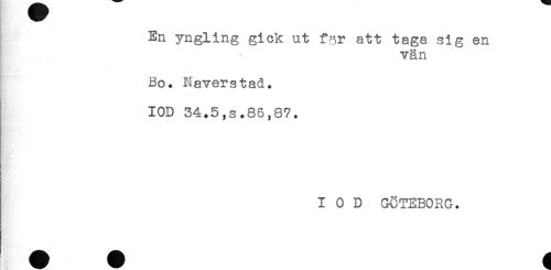 //// En yngling gick ut f^r att taga sig en //// vän //// Bo. Näverstad. //// IOD 34.5,s.86,87. //// I 0 D GÖTEBORG. ////