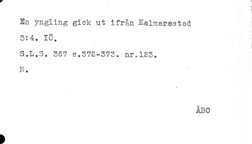 //// En yngling gick ut ifrån Kalmarestad //// 3:4. 13. //// i //// ' * //// t //// S.L.S. 387 s.372-373. nr.123. //// N. //// * //// ÅBO ////