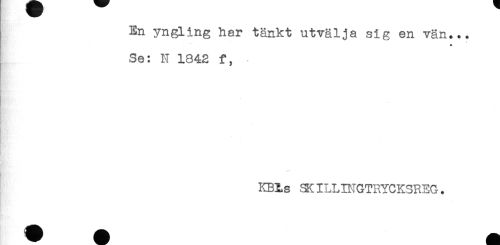 //// En yngling har tänkt utvälja sig en vän... //// * //// Se: N 1842 f, //// * //// KBTLs SKILLn?GTRYCK3REG. ////