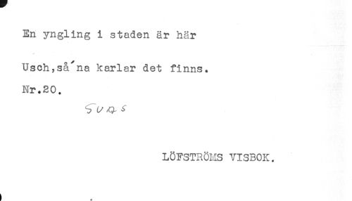 //// En yngling i staden är här //// Usch,så^na karlar det finns. //// Nr.20. //// t //// /LÖFSTRÖHS VISBOK. ////