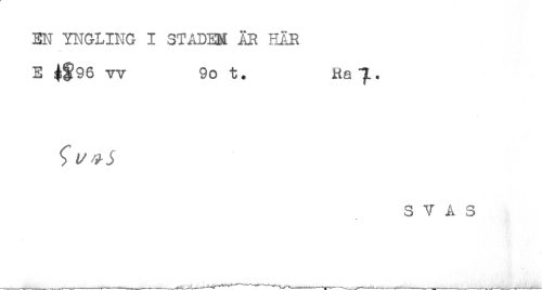//// EN YNGLING I STADEM ÄR HÄR //// E ^96 vv 9o t. Ra^L. //// S V A S ////