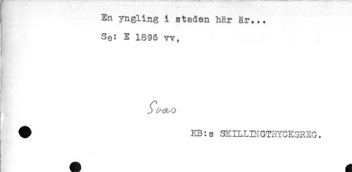 //// En yngling i staden här är... //// Se: E 1896 vv, //// K' - //// # KB: s SKILLDIGTRYCKSREG. ////