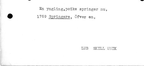//// En yngling^poike springer nu, //// ^ 1769 Sprin^are. Öfver en, //// ! //// i //// ) //// LUB SKILL UNIK ////