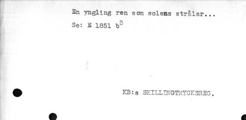 //// En yngling ren som solems strålar... //// Se: E 1851 b^ //// Ep //// KB:s SKILLBTGTRYCKSREG. //// A ^ ////