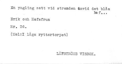 //// En yngling satt vid stranden invid det blåa //// ha f... //// *<* ' r . //// Erik och Hafsfrun //// Nr. 36. //// (Me!:I låga ryttartorpet) //// LÖ7STRÖHS VISBOK. ////