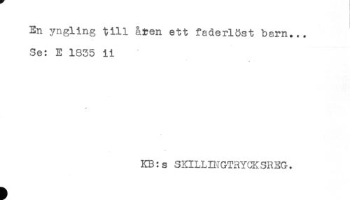 //// En yngling till åren ett faderlöst barn... //// Se: E 1835 ii //// v //// KB:s SKILLINGTRYCKSREG. ////