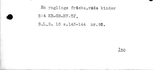 //// En ynglings fråska^räda kinder //// * * //// ^ 5:4 KB-GB-W-TJ. //// S.L.S. 10 s.143-144 nr.95. //// i //// { //// ÅBO ////