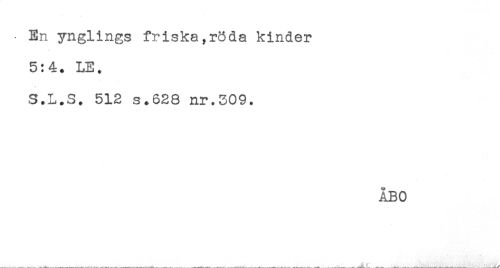 //// En ynglings friska,röda kinder //// 5:4. LE. //// S.L.S. 512 s.628 nr.309. //// ÅBO ////