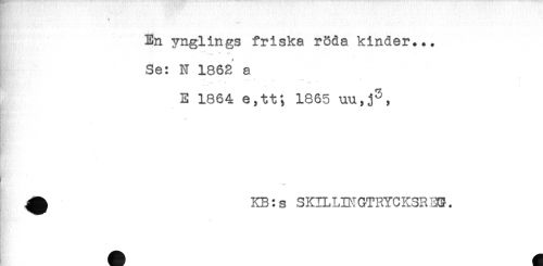 //// * //// En ynglings friska röda kinder... //// Se: N 1862 a //// ^ ... * * .. .i- - ** //// ' * ^ ... ^ //// - //// E 1864 e,tt; 1865 uuj^', //// -t //// * //// ^ KB:s SKILLDIGTRYCKSR3B. ////