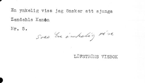 //// En ynkelig visa jag önskar att sjunga //// v //// Zandahls Kan&n //// Nr. 5. //// r //// < //// LÖFSTRÖHS VISBOK ////