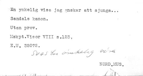 //// En ynkelig visa jag gnskar att sjunga... //// Sandals kanon. //// Utan prov. //// Hskpt.Visor VIII s.123, //// E.U. 32072. //// NORD. ms. //// .....-___vf Jt.' ..'i', i å......,.A_- ____J_jj ^ ^___,_- ////