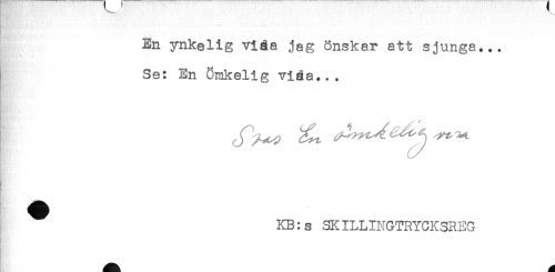 //// En ynkelig vida jag önskar att sjunga... //// Se: En Ömkelig viåa... //// . //// [ //// KB:s SKILLINGTRYCKSREG ////