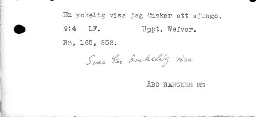//// y . //// B*'- //// En ynkelig visa jag önskar att sjunga, //// ^ 9:4 LF. Uppt. V^efvar. //// i //// < //// ] 33, 165, 253. //// ÅBO RANGKEN MS ////