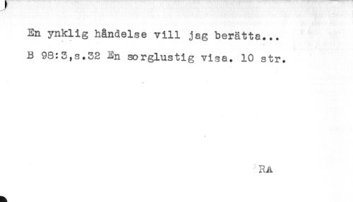 //// En ynklig händelse vill jag berätta... //// B 98:3,s.33 En sorglustig visa. 10 str. //// * ////