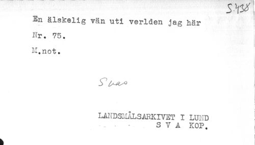 //// En älskelig vän uti verlden jag här ! //// ! //// t //// Nr. 75. //// < //// i //// II. not. //// i //// LANDSldLSARKIVET I LUND //// SVA KOP. j //// I ////