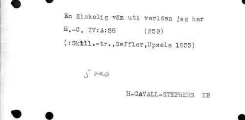 //// En älskelig vän uti verlden jag har //// H.-C. IV:A:38 (259) //// t. //// (:SkHl.-tr. ,Seffler,Upsala 1835) //// H-CAVALL-STEPHEI-;S KB ////