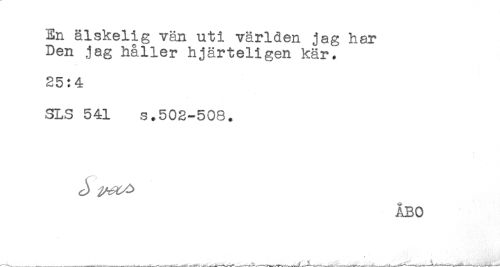 //// En älskelig vän uti världen jag har //// Den jag håller hjärteligen kär.' //// 25:4 //// SLS 541 s.502-508. //// .. ..A',..;-' //// ÅBO ////