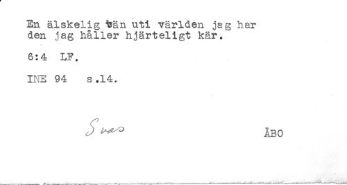 //// En älskelig Mn uti världen jag har //// den jag håller hjärteligt kär. //// 6:4 LF. //// INE 94 s.14. //// ' ^ ^ ÅBO ////