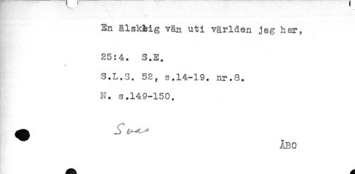 //// En älsk&ig vän uti världen jag har, //// 25:4. S.E. //// ' * . r //// S.L.S. 52, s.14-19. nr.8. //// N. s.149-150. //// ÅBO ////