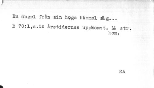//// * //// En ängel från sin höga håmmel sag... //// B 70:1,s.53 Årstidernas uppkomst. 14 str. //// kom. //// RA ////