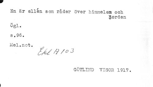 //// En är allén som råder över himmelem och //// jorden //// 8gl. //// *. //// s.96. //// Mel.not. //// GOTLIND VISOR 1917. ////