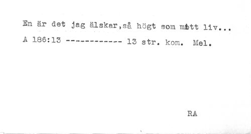 //// En är det jag älskar,se. högt som m&tt liv... //// A 186:13 ----13 gtr. kom. Mel. //// RA ////