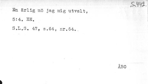 //// En ärlig mö jag mig utvalt, //// 5:4. EE. //// S.L.S. 47, s.64, nr.64. //// ÅBO ////