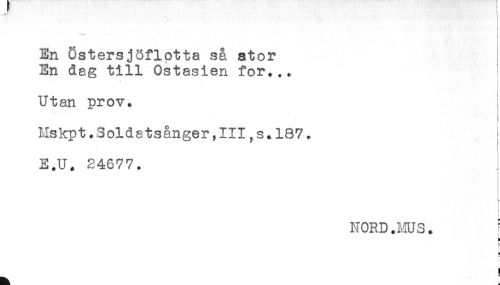 //// En ustersjöflotta så stor //// En dag till Ostasien for... ^ //// * i //// Utan prov. I //// Mskpt.Soldatsånger,III^ s.187. //// ! //// E.U. 24677. //// t //// < //// i //// NORD.MUS. ' //// 5 //// j ////