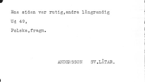 //// Ena sidan var rutig,andra långrandig //// Ud 49, j //// Polska, fragm. ! //// e //// ANDERSSON SV.LÅTAR. //// i //// t //// i //// f ////