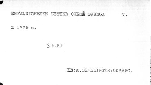 //// ENFALDIGHETEN LYSTER OCKSi SJUNGA 7. //// t //// Z 1776 c. //// < //// < //// t : //// < //// t- //// t //// w //// KB:3.SK LLINGTRYCKSREG. ; //// H //// ! ////