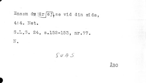 //// * * //// Ensam dpiärjej^se vid din sida, //// t //// 4:4. Net. //// S.L.S. 24, s.152-153, nr.77. //// N. //// f //// ÅBO ////
