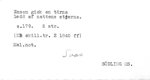 //// Ensam gick en tärna //// ledd af nattens st#erna. //// s.179. 2 str. //// (KB skill.tr. E 1845 ff) //// Mel.not. //// SÖ DL ING LIS. ////