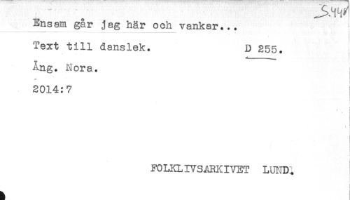 //// Ensam går jag här och vankar... //// ____. -.. ___ _____ . __ ____ ____ ? //// Text till danslek. D S55. ; //// Ang. Nora. //// 2014:7 //// . //// - //// FOLKLIVSARKIVET LUND^ //// * //// < //// ! //// - ////
