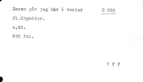 //// Ensam går jag här å vankar D 255 //// ^ < //// Dl.Högsäter. //// s * 62. //// 693 fol. //// V F F ////