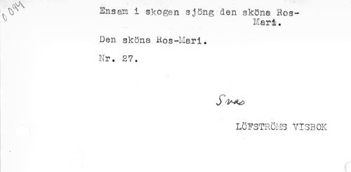 //// iLnsam i skogen sjöng den sköna Ros- //// ^ Mari. //// Den sköna Ros-Mari. //// Nr. 27. //// LÖFSTRÖHS VISBOK ////