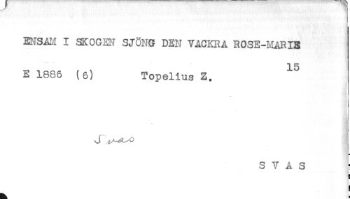 //// ENSAM I SKOGEN SJÖNG DEN VACKRA ROSE-MARIE //// 15 //// E 1886 (6) Topelius Z. //// * //// S V A S ^ //// ! //// ] ////