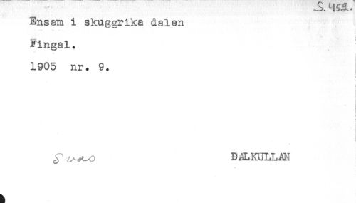 //// -- v S) ^ ^ ' ** //// Ensam i skuggrika dalen //// r //// Fingal. //// i //// 1905 nr. 9. //// : //// i //// ! //// < //// < //// i //// ! //// j //// < //// J DALKULLAN ////