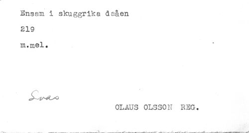 //// Ensam i skuggrika daåen //// 219 //// mel* //// OLAUS OLSSON REG. ////