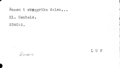//// - //// ^nsam i skuggrika dalen... - //// Hl. Hanhals. //// 2340:2. //// i //// ! //// L U F //// ! //// i //// i ////