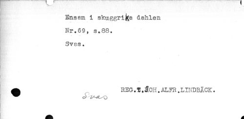 //// ' . ' ' ' //// Ensam i skuggrika dahlen //// ^ * //// Nr.69, s.88. //// Svas * //// HR''-*' //// : ' . - //// t //// - //// ^ REG. T. #0H. ALFR. LINDBÅCK. ////