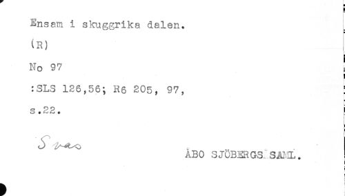 //// Ensam i skuggrika dalen. //// (R) //// i //// No 97 //// ; //// :SLS 126,56; R6 205, 97, ! //// ' i //// s.22. //// t) //// ÅBO SJÖBERGS. SA?IL. //// K //// ! //// i //// i ////