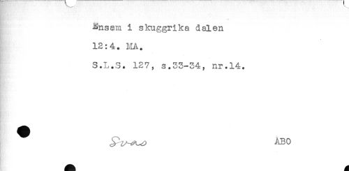 //// Ensam i skuggrika dalen //// 12:4. MA. //// S.L.S. 127, s.33-34, nr.14. //// - //// ÄBO ////