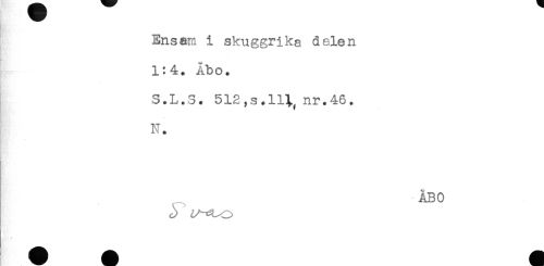 //// Ensam i skuggrika delen //// 1:4. Åbo. //// S.L.S. 512,s.111 nr.46. //// ! * //// N. //// ÅBO //// //// /