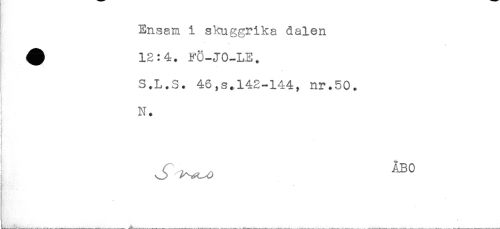//// Ensam i skuggrika dalen //// ^ 12:4. FÖ-JO-LE. //// S.L.S. 46,s.142-144, nr.50. //// N. //// i //// L ^ . ____ _ j. __^^ _ ..... ////