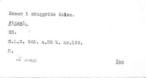//// Ensam i skuggrika daåen. //// Fingal^ //// ES. //// S.L.S. 542. s.38 b. nr.199. //// N. //// ^ ÅBO //// //// /